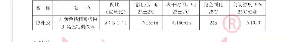 2 配膠 按規(guī)定進(jìn)行配制,將膠置于潔凈、干燥、無油的容器中,混合均勻至顏色一致。配膠不宜過多,做到隨配隨用。夏季一次配膠量不應(yīng)超過 500 克。